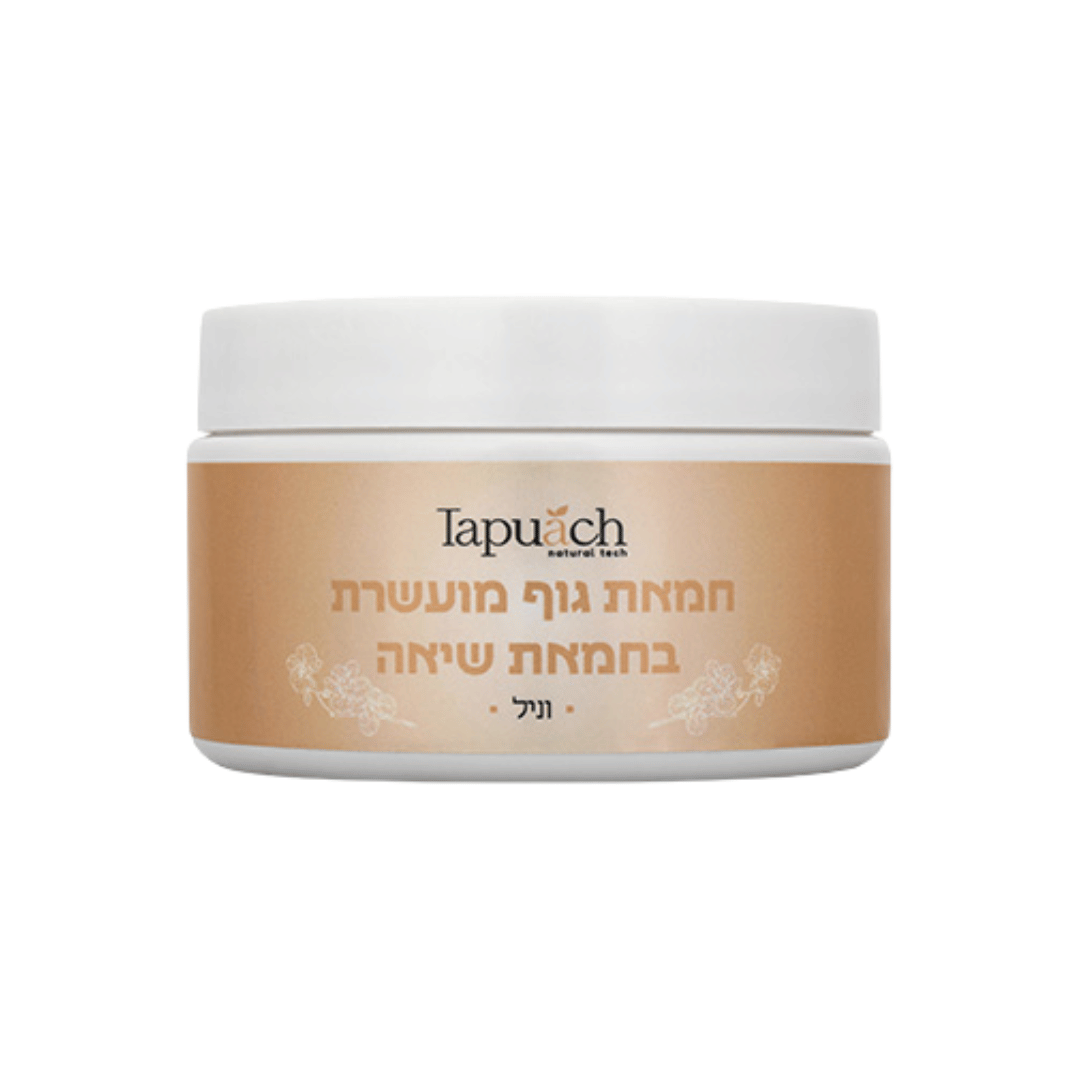 חמאת גוף בניחוח וניל 250 מ"ל הוא מוצר איכותי מבית TAPUACH, המבוסס על רכיבים טבעיים ונוסחה מתקדמת שפותחה במיוחד להזנה עמוקה, לחות ממושכת וריח נעים לאורך זמן. מתאים במיוחד לשימוש יומיומי ולשמירה על מראה עור בריא, רך ורענן.